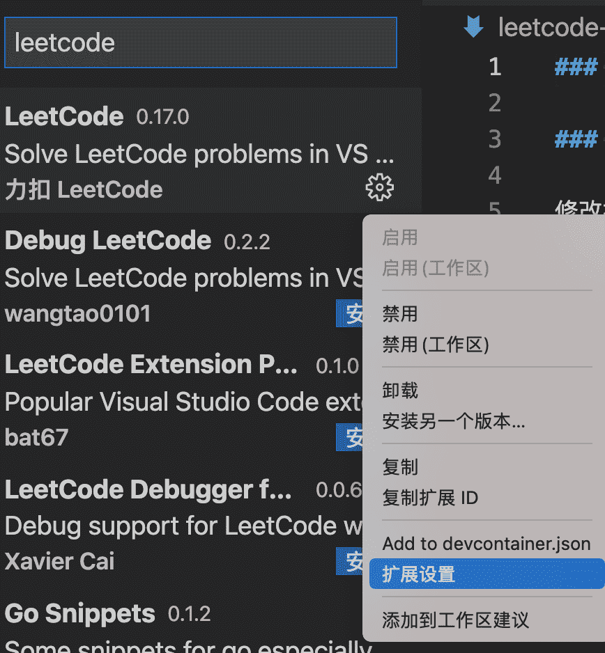 直接在vscode中搜索 LeetCode 插件完成下载,并登陆账号,修改配置如下